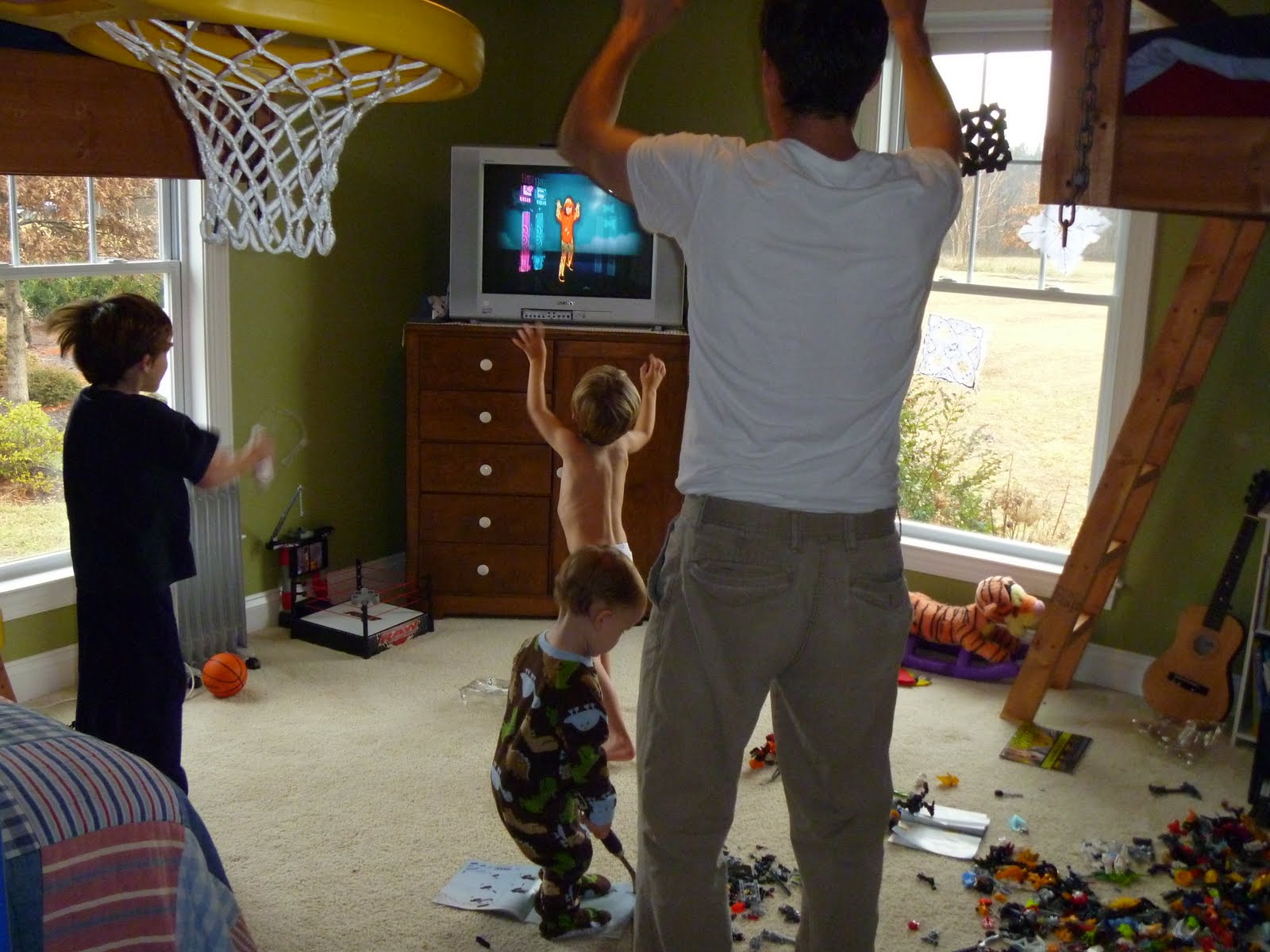 We've had a busy few weeks! We finally got to meet the newest member of our family, but then we were all hit with a terrible virus! Justin started with it on Christmas Eve. Then the boys caught it and then it was my turn. So we spent Isaiah's break from school feeling pretty crummy - fevers, VERY sore throats and sinus/ear aches. Justin came home from work the other day and surprised them with a Wii game that we recently played at his sisters 30th birthday party. It has a bunch of old songs on it and you have to follow the dance moves on the screen. You get points for accuracy and at the end there is a winner. It is SOOO much fun! So, during drug induced periods of comfort, we would all challenge each other to dance-offs! At one point, Justin and I realized we were so into it that we didn't even realize we had two babies crying, but still wanted to finish the song! Terrible, I know! This Wii, that my Mom gave us a couple years ago, has really been such a cool thing to have.